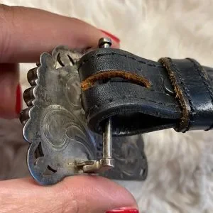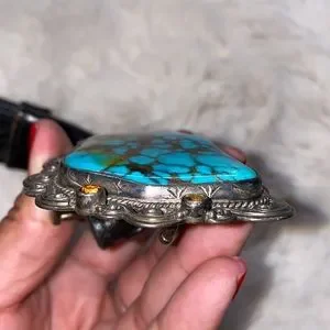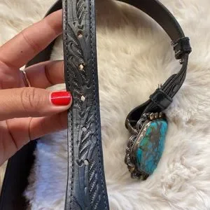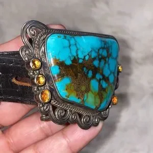 Signed Mona Van Riper Turquoise & Sterling Silver Belt Buckle & Leath…
