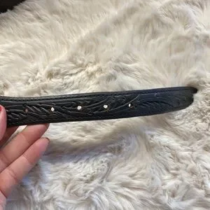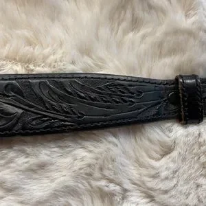 Signed Mona Van Riper Turquoise and Sterling Silver “El Rayo” Belt Buckle & Hand Tooled Genuine Cowhide Handmade in USA Belt