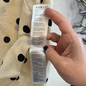 This sweet shirt is made of silk and viscose. It is dry clean only (and has only been dry cleaned). The level of details makes this parisian style blouse so delicate and beautiful. It has big, heavy black buttons on each sleeve and little botton loops to adjust size of cuff. Buttons are size of a quarter (pic displays). The fabric itself has a floral rose design texture/shine. The sleeves have small pleats on top and back of shoulders. You can wear this under a blazer or with a sweater tied around your neck or draped over your back and shoulders. Little darts are sewn into the sides near bust for feminine fit. I have a hard time letting this go but does not fit me. European size 36 or US size 6. Please enjoy this lovely blouse. Bundle to save on pesky shipping. Xox