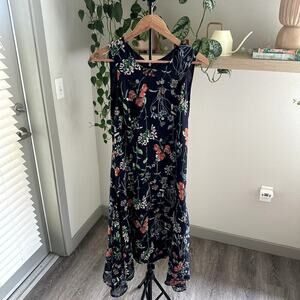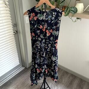 Tommy Hilfiger Navy Floral Hi-Low Midi Dress 10 | Trapeze | Chic | Resort | Boho