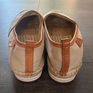 Size 7 • Beige • Canvas upper • Leather trim • Braided jute midsole • Slip on style