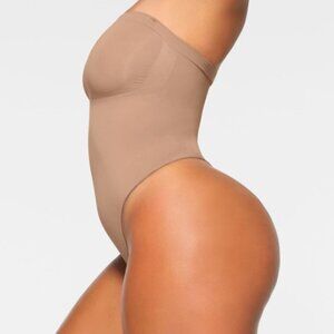 XXS: Strapless Thong Bodysuit in Sienna / Strapless Thong Bodysuit in Onyx / Brief Bodysuit in Onyx / Catsuit (full leg to mid-calf) in Clay (2)
