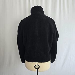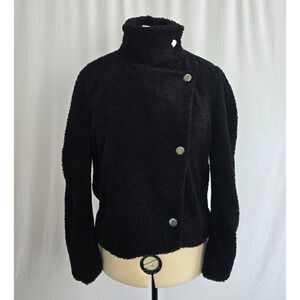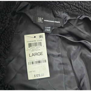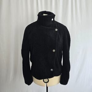 INC International Concepts Sherpa Jacket Women's L Black Wrap Button Crop NWT