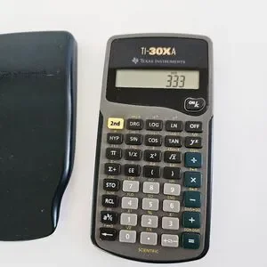 Texas Instruments TI-30Xa scientific calculator. It is a basic, battery-operated scientific calculator with a one-line, 10-digit display. It is suitable for general math, pre-algebra, algebra 1 and 2, and general science. The calculator can perform a variety of functions, including trigonometric functions, logarithms, roots, powers, reciprocals, and factorials. It is approved for use on the SAT, ACT, and AP exams. Fully functional.