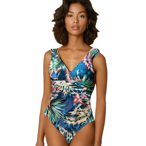 La Blanca Swimsuit V Neck One Piece Tropical Print New 6
