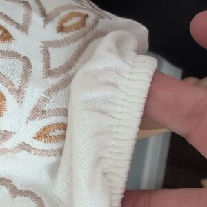 Detailing: Intricate floral embroidery on the forearms for an artisanal touch.