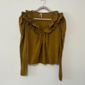 Anthropologie Ruffled V Neck Burnished Gold Blouse