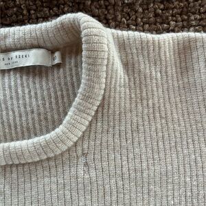 Extra fine merino wool sweater from danish luxury brand Szeki. Has a couple of small mended spots(pictured), but otherwise in great condition. Super soft! Lovely oyster color. Gently laundered in natural, chemical free detergent and laid to dry. This style is no longer available on their site, but I’ve included a shot of some of their current pieces/prices.
