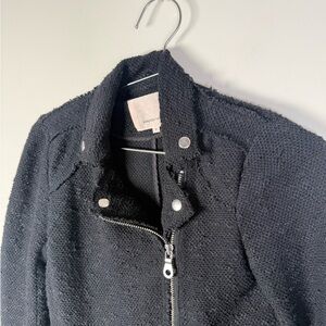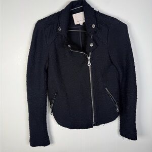 Rebecca Taylor Black Boucle Moto Jacket Cropped Asymmetric Zip