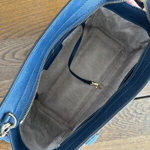 Michael Kors Selma Saffiano Leather Satchel Messenger Handbag Medium Navy Blue