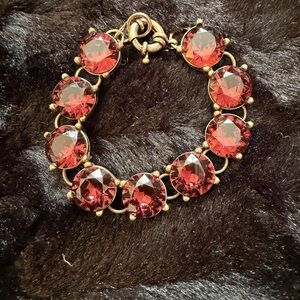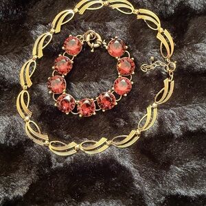 Vintage Garnet Color Women's Bracelet & Gold Tone Choker Necklace