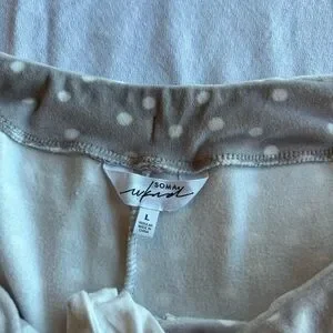 Elegant gray pajama set with subtle white polka dots. Ideal for relaxation. Soft and stylish.