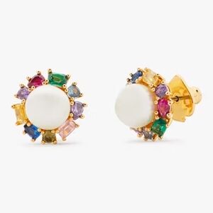 NWT - Kate Spade - Multicolor Gemstone and Pearl Gold Stud Earrings