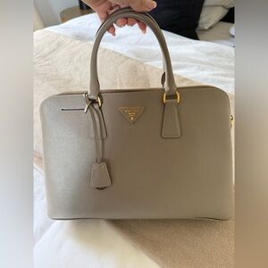 PRADA MEDIUM SAFFIANS LEATHER PRADA MATINEE BAG- Toupe color
