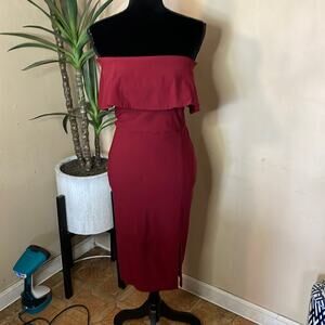 This gorgeous red dress is sure to hug your curves in all the right places! It's soft to the touch and has a good amount of stretch for a comfortable and flattering fit.