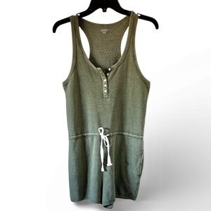 Aerie Women’s Olive Green Cotton Blend sleeveless Henley Romper XS