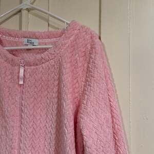 Kim Rogers Pink Plush Zip-Front Robe, Chevron Texture Housecoat sz M