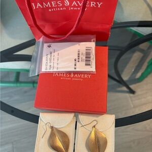 James Avery 10k Repousse Leaf Dangle Earrings