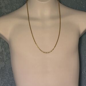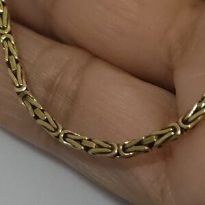 Gorgeous 14K solid gold 24" Byzantine chain necklace, weighing 22.3 grams. The unisex necklace features a barrel closure, is signed 14kt Italy, and has a classic yellow gold color. The Byzantine chain style adds a unique and stylish touch to this piece of fine jewelry, making it a versatile and elegant accessory for any occasion. Made from solid 14kt yellow gold, this necklace is a timeless and luxurious addition to any jewelry collection.