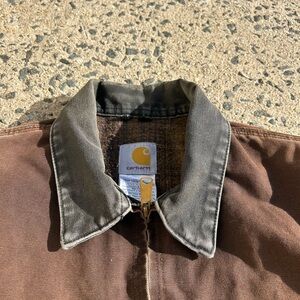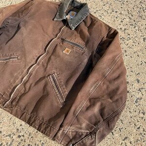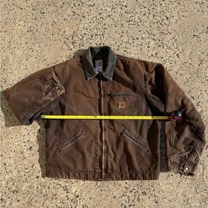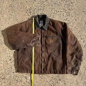 VTG Carhartt Detroit Jacket J97 DKB Brown Blanket Lined Distressed Faded Size XL