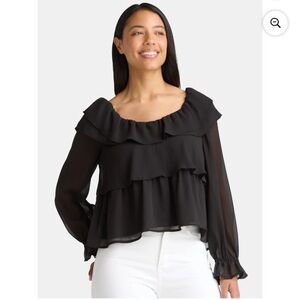 NEW! Time and Tru Black Long Sleeve off-the-shoulder Ruffle Blouse Top NWT - XL