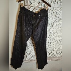 Versace Couture Black Shimmer Denim Jeans Vintage Wide Leg Made In Italy Size 35
