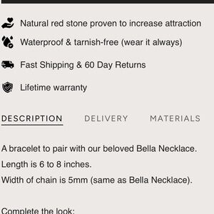 This stunning gold bracelet features a vibrant red accent, perfect for adding a touch of elegance to any outfit. Ideal for any occasion, this piece is a must-have for your jewelry collection. Brand new, never worn an original box. Comes from a smoke free home. See photos for product description. Waterproof jewelry!