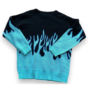Y2K Flame Fire Sweater Black Blue Mens Knit Pullover