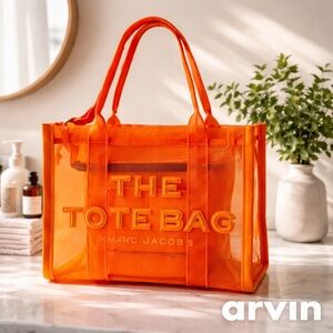Marc Jacobs Vibrant Orange Semi-Sheer Crossbody/Shoulder Mesh Tote with zipper