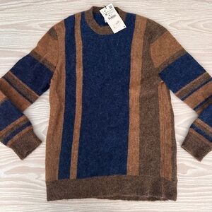 Zara Men’s wool blend striped sweater in brown and blue size M