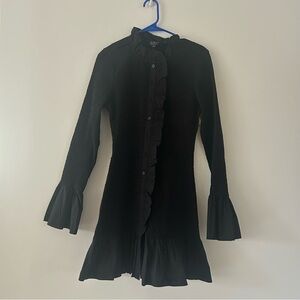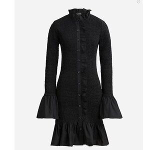 NWT J.Crew Organic Cotton Smocked Button Up Mini Black Dress Size S