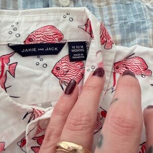 Charming button-down shirts by Janie and Jack. Features stripes, plaids, and playful prints.