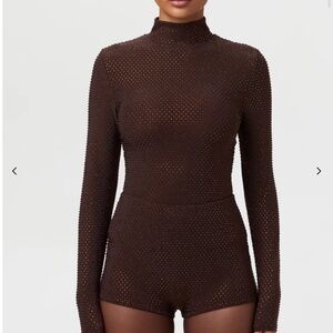 Naked Wardrobe Crystal High Waisted Hot Pants & Long Sleeve Top Set