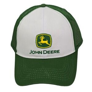John Deere Hat, Green White Trucker Cap, Leaping Deer Logo Hat, Farm Tractor Snapback, John Deere Mesh Cap, Rural Lifestyle Hat, Americana Trucker Hat, Adjustable Snapback Farm Hat, John Deere OSFM Cap, Country Style Hat, Farmcore, Tractorcore, Ruralcore, Outdoorscore, Countrycore,