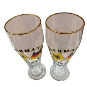 Tall Beer Glass Swirl Germany Deutschland With Gold Trim Set of 2-9 inch
