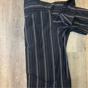 Stylish black shirt with white stripes. Features button-down design. Ideal for casual outings.