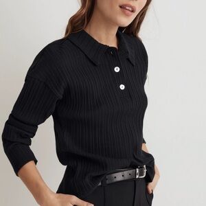 Madewell Variegated Rib Boxy Long Sleeve Polo Shirt V-Neck size L
