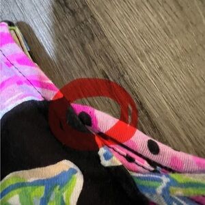 Super comfortable dress and vibrant colors. Good condition for pin hole on the back of one of the straps in the back. Pictured up close.