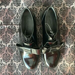 You could call them tuxedo pumps, or you could call them the gorgeous shoegaze rush you've been chasing. What will you name them? I have a name in mind, but I'm not telling, and sadly they don't fit me. What are they? Oxfords, black patent leather, a leather bow, a clever heel? They are more than the sum of their parts. Never worn, it is bittersweet to offer them to Poshmark. Do me a fave, will you? Take them off my hands.