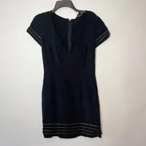 Jay Godfrey Womens Short Sleeve Mini Sheath Dress Black 8 V-Neck Zipper Trimmed
