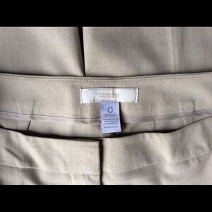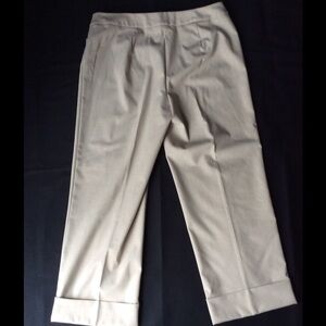 These dress pants are cropped with cuffs. They are a Chico size 0 which corresponds to a size 4. They are a light tan color. The band measures 16" and the inseam is 24". They look like new.