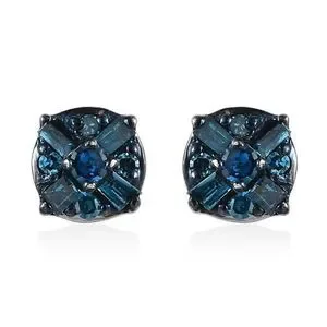 Blue Diamond Platinum/Sterling Silver Stud Earrings