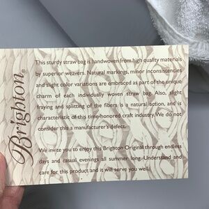 Hand woven from straw with leather trim and braided straps, along with removable Brighton charm
