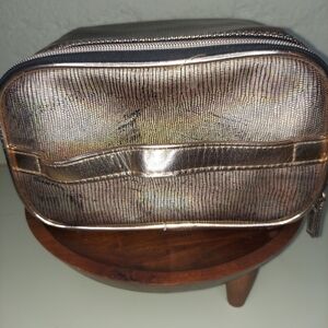 Stylish holographic cosmetic bag with a shimmering design. Perfect for organizing your beauty essentials.