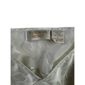 This vintage 1990s Victoria's Secret nightgown is a luxurious cream/ivory color, perfect for special occasions like bridal wear. Made of polyester, this original piece exudes an elegant look. With a size large and a regular fit, this gown is a timeless piece that captures the essence of glamour and sophistication. Slit.