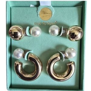 2 Pairs of True to Form Gold Hoop Faux Pearl Ball Earrings.