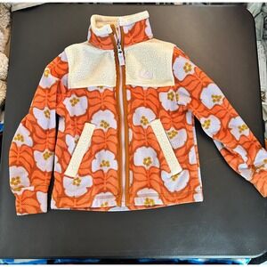 REI Co-op Kids Fleece Jacket Orange Floral Print Sherpa Collar XXS 4-5