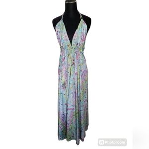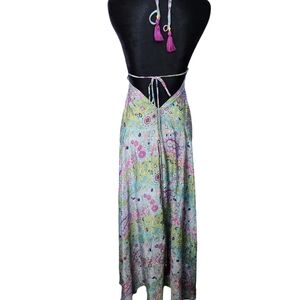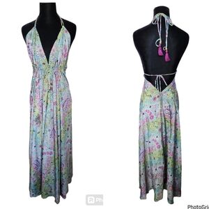 Nwt bohemian boutique backless floral halter paisley dress