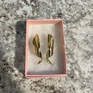 Gorgeous gold tone earrings with a truly elegant feel to them. They go with any outfit! Callout: post slightly bent but does not impact the wear of the piece. Box in photos not included.