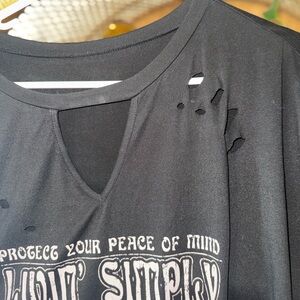 Stylish black graphic top featuring a unique design. Oversized on me. Size 2X but would be cute worn oversized as well